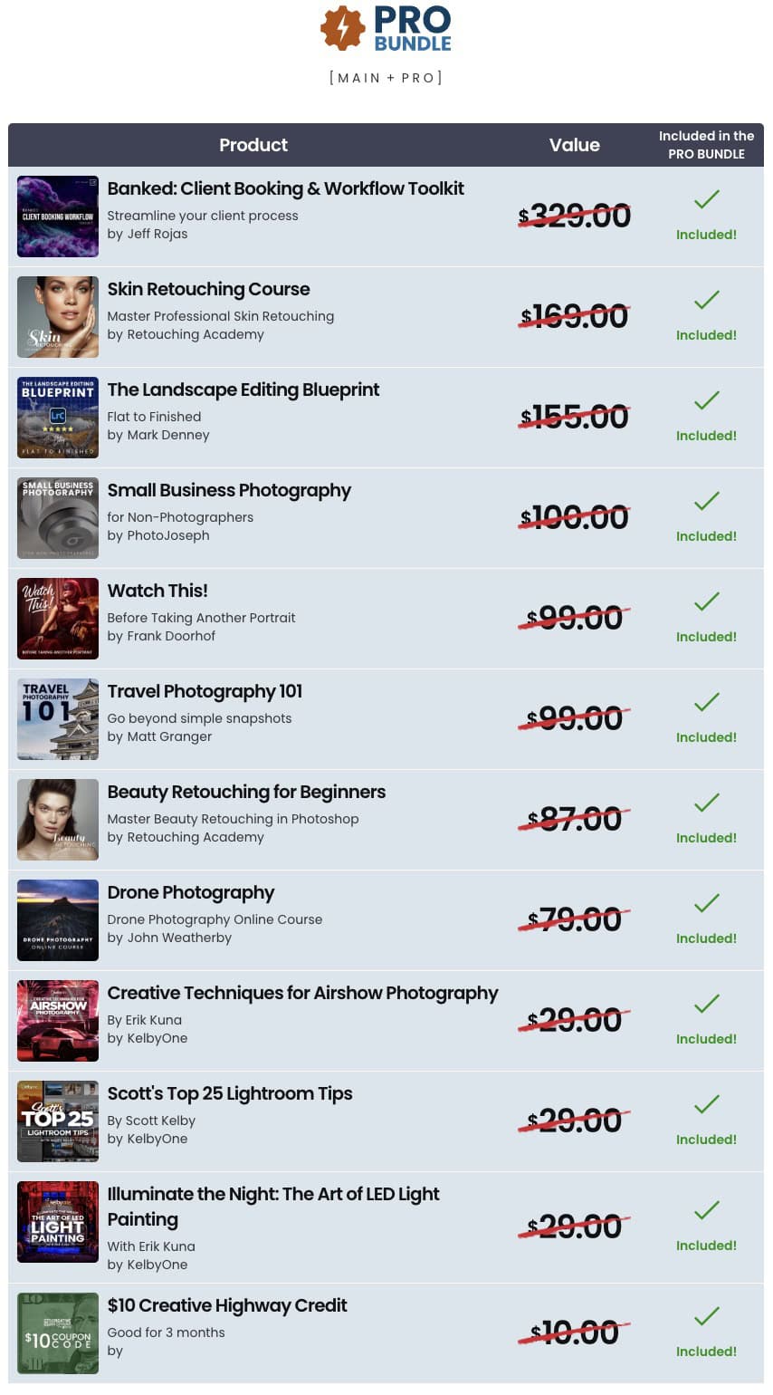 I also enjoyed Mark Denney’s Landscape Editing course. I have subscribed to Mark’s YouTube channel for years and have always appreciated his calm, concise, and straightforward teaching method. This style has translated well to this editing course, and you’ll come away with a considerably broadened knowledge of color editing and lighting control. Mark’s courses are usually expensive. This one normally sells for $155, but you’ll get it included in the Pro Bundle with $2000+ worth of other stuff. That’s hard to beat.