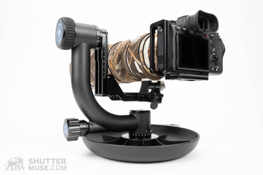 My review unit has a slight misalignment of the laser-etched scale. Setting the indication arrow directly in line with the 0-degree marker made it clear that the gimbal arm was not vertical. It was not out by a long way, perhaps 2-3 degrees, but it was enough that it was noticed immediately when I set up the studio photos. In practical terms, such a thing makes no difference to how I use a gimbal for wildlife photography, but it could have been annoying if I used it for multi-row panoramic images. The misalignment was immediately evident to me, so this is something that Sirui’s quality control should have caught.