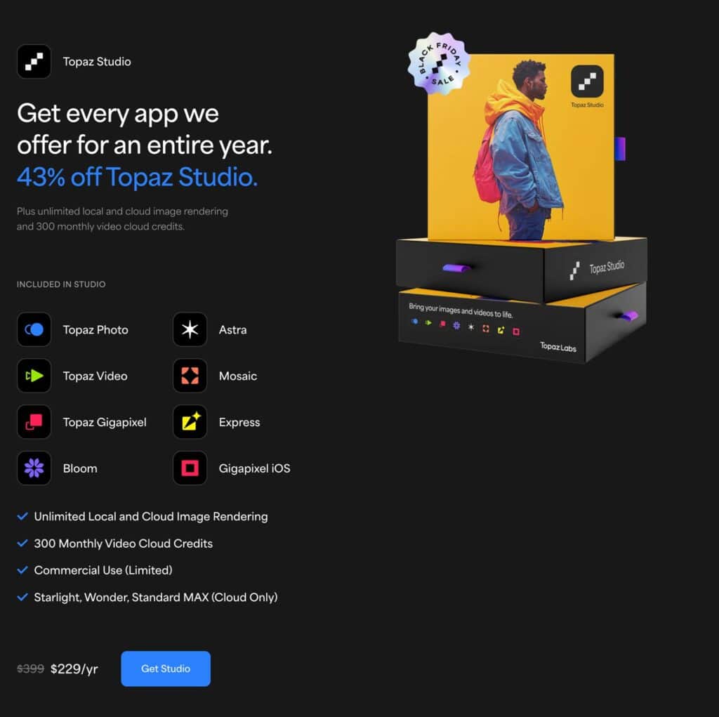 Topaz Labs has developed an incredible set of AI tools in the past few years. DeNoise AI and Gigapixel AI have quickly become the de facto standards for noise reduction and image enlargement. Sharpen AI has also proven to be a wizard-like application for rescuing images that are not critically sharp due to motion blur or missed focus. The Topaz suite of tools is the only plugin system I regularly use in my editing workflow. If you want an all-in-one solution that includes all these great plugins, Topaz offers Topaz Studio, discounted by 43% for Black Friday 2025.