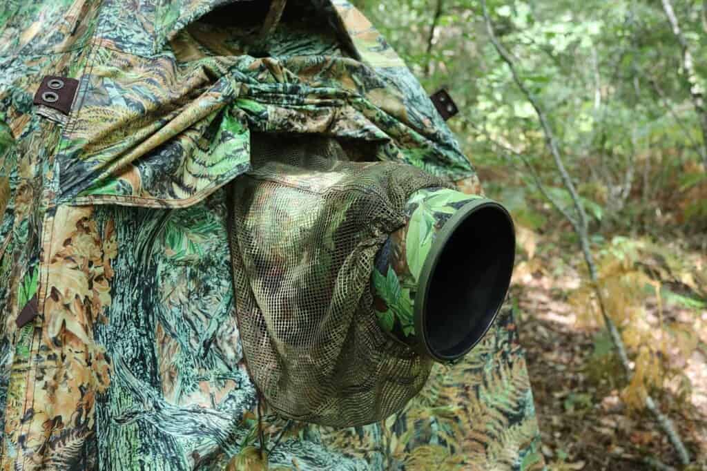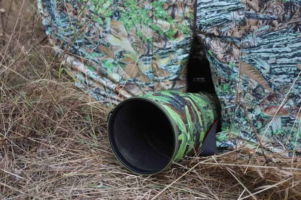 What you’ll quickly notice about hunting blinds is that they either have no large openings to poke your lens through, or they have giant openings spanning the entire side of the blind that seriously reduce your ability to hide you and your gear. A skinny rifle muzzle is much easier to hide than a huge super-telephoto lens.